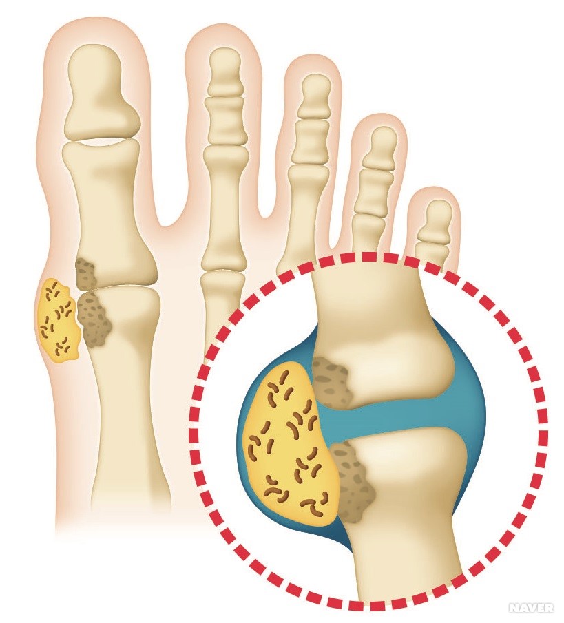 요산이 관절에 쌓여 통증 유발