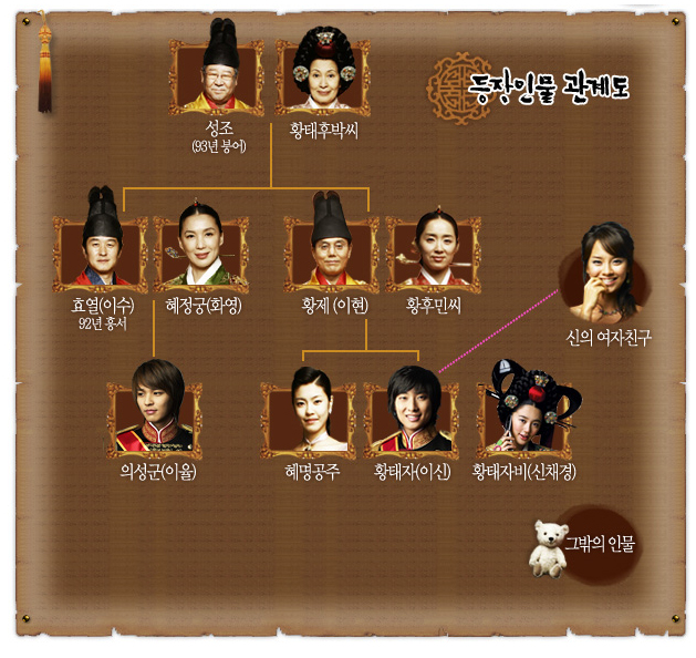또한 신채경은 이신의 전 약혼녀인 혜명공주(송지효)와 그녀의 오빠인 윤수(김정훈)와도 복잡한 관계에 놓이게 됩니다. 혜명공주는 이신을 짝사랑하고 있으며, 윤수는 신채경에게 호감을 가지고 있습니다. 그 외에도 궁중에서는 신채경을 좋아하지 않는 사람들이 많아서 그녀를 해치려는 음모와 암투가 벌어집니다.