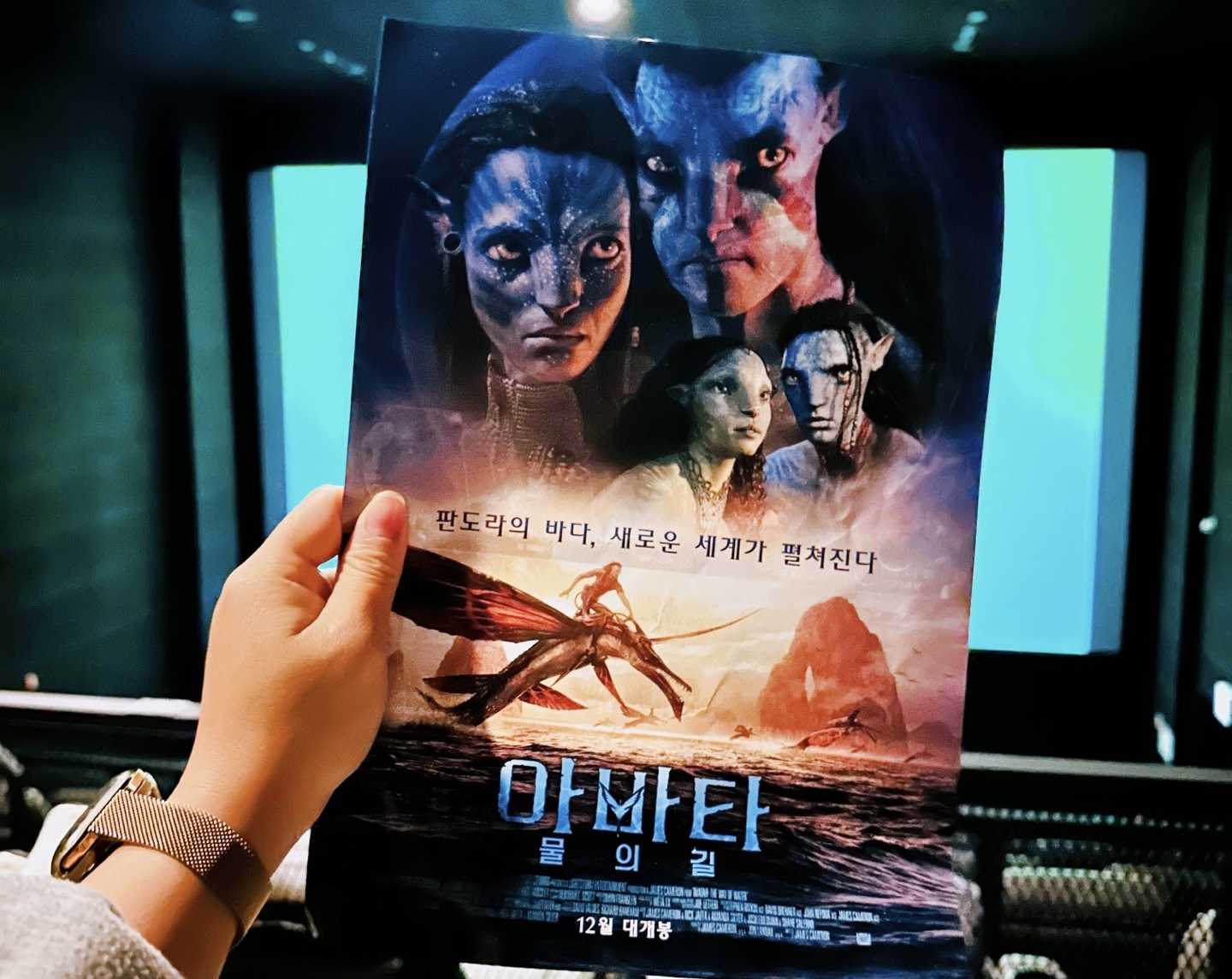러닝타임 3시간이 넘어가는 영화로 가만히 앉아서 볼 수 있을까? 정말 고민을 많이 하고 음료 섭취도 최소로 하고 긴장하고 보았는데 결론적으로 말씀드리자면 시간 가는 줄 몰라 화장실 한번 안 가고 무사히 보게 되었습니다. 13년 전인 2009년 아바타는 국내에서 1362만 관객을 동원하며 해외영화 최초 천만영화를 기록, 월드 와이드 누적 수익으로 최초로 30억 달러를 넘은 작품으로 아바타 2 또한 기대가 많은 영화였습니다. 이번 <아바타: 물의 길>를 보고 난 후 "역시 아바타가 아바타 했다"라는 평을 남길 것 같습니다.