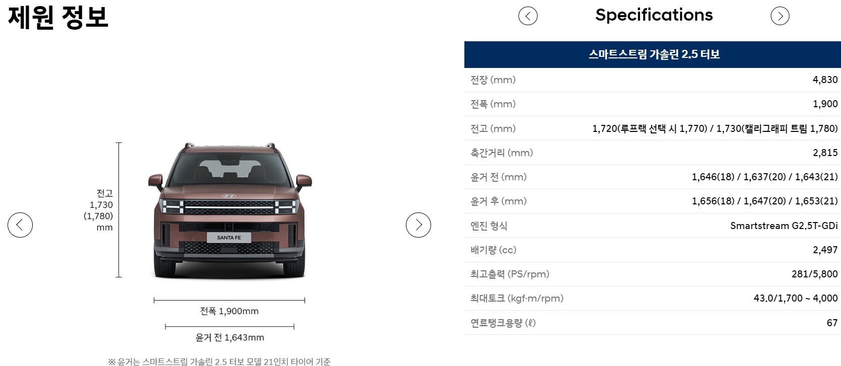 2. 현대 싼타페 스펙