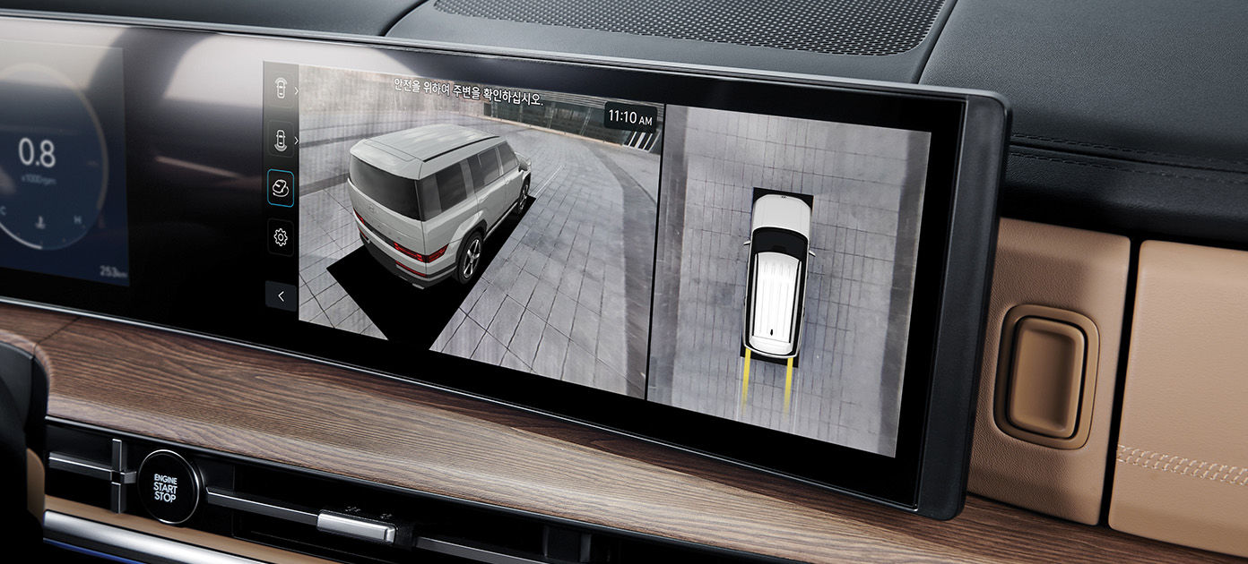 서라운드 뷰 모니터를 통해 주차시 안전을 위해 주변 상황을 확인 할 수 있도록 했다. 또한 헤드업 디스플레이를 적용해 운전자 전면 유리창에 계기판과 네비게이션으 정보들을 표시하도록 해 운전자의 시선을 분산시키지 않고 정보를 제공할 수 있도록 했다. 이는 실제로 운전이 미숙할 시 전방주시가 흐트러지기때문에 매우 좋은 기능이라고 생각이 된다. 그리고 기존의 다이얼이 위치해 있던 자리에는 스마트폰 2대가 동시 충전이 가능한 무선 충전기를 놓게 되었는데, 이로인해 보다 편리한 사용이 가능해 질 것으로 보여진다.