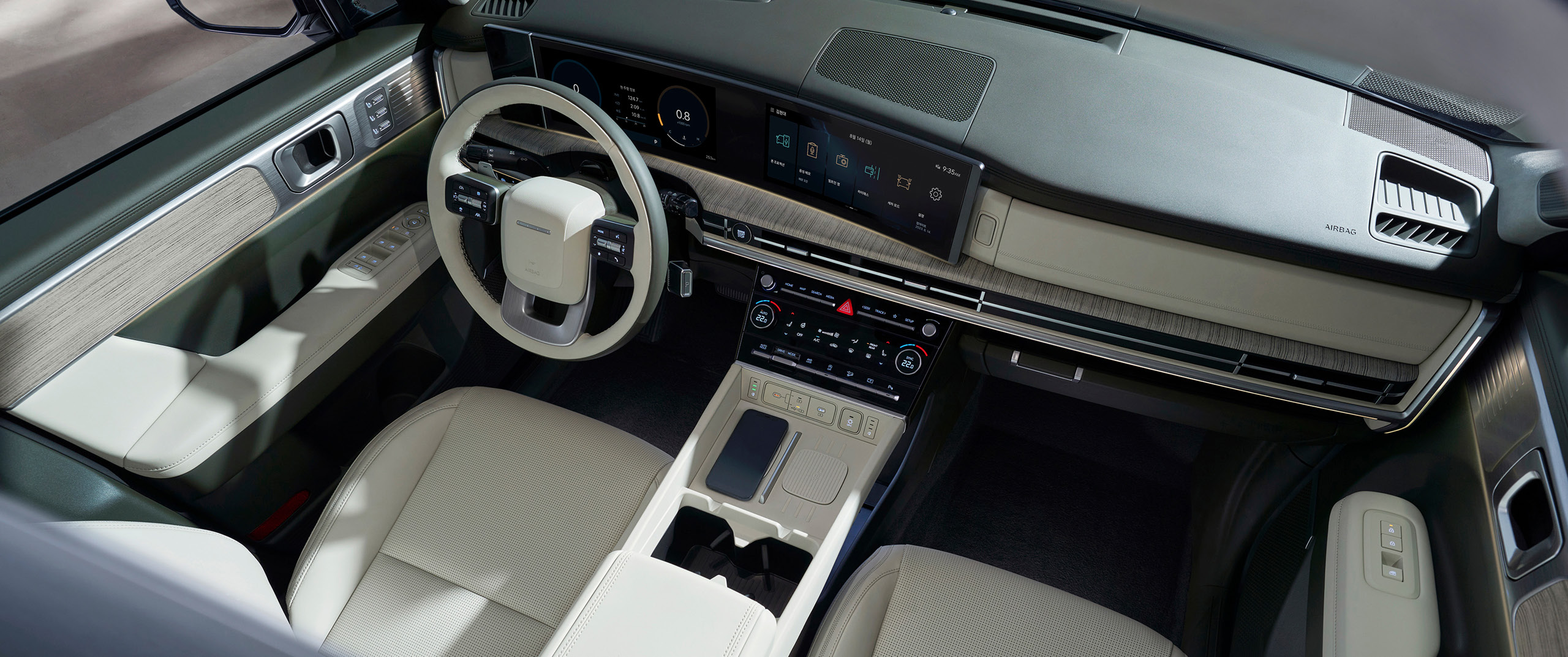 그중 가장 많이 보여진것 중 하나가 양방향 멀티콘솔로, 1열 뿐 만아니라 2열에서도 오픈이 가능한 콘솔을 적용해 편의성을 더했고 스마트폰을 통한 도어 잠금 / 해제, 시동이 가능하고 최대 15개의 디바이스까지 사용 권한을 공유할수 있도록 했다고 한다. 또한 디지털 센터 미러 전용 카메라를 통해 후방을 확인할 시 좀 더 선명하게 볼 수 있도록 적용했다. 또한 실내 지문인증 시스템을 통해 지문인식만으로 차량 내에서 간편결제 또는 발레모드 해제시 필요한 인증 기능을 수행할 수 있도록 했다. 그리고 빌트인 캠을 전, 후방카메라로 이용해 음성녹음 및 충격 감지저장 영상전송 등 차에대한 정보 공유와 제공 또한 용이하게 만들었다.